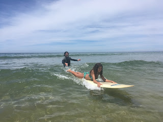 Depois de conseguirmos ter tudo protegido do sol, foi hora de ir para a água e aprender um pouco de surf e bodyboard.